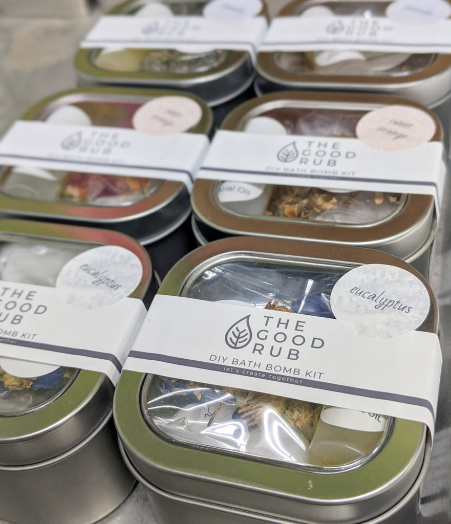 Each kit contains pre-measured ingredients and the tools necessary to make 4 oz of bath bombs. Using molds from your own kitchen, you'll make them in whatever shape you choose! Bath bomb options include color, scent and toppings.