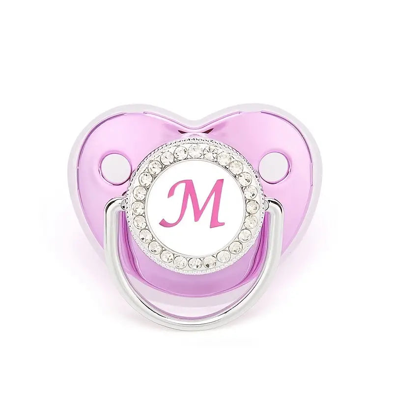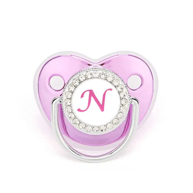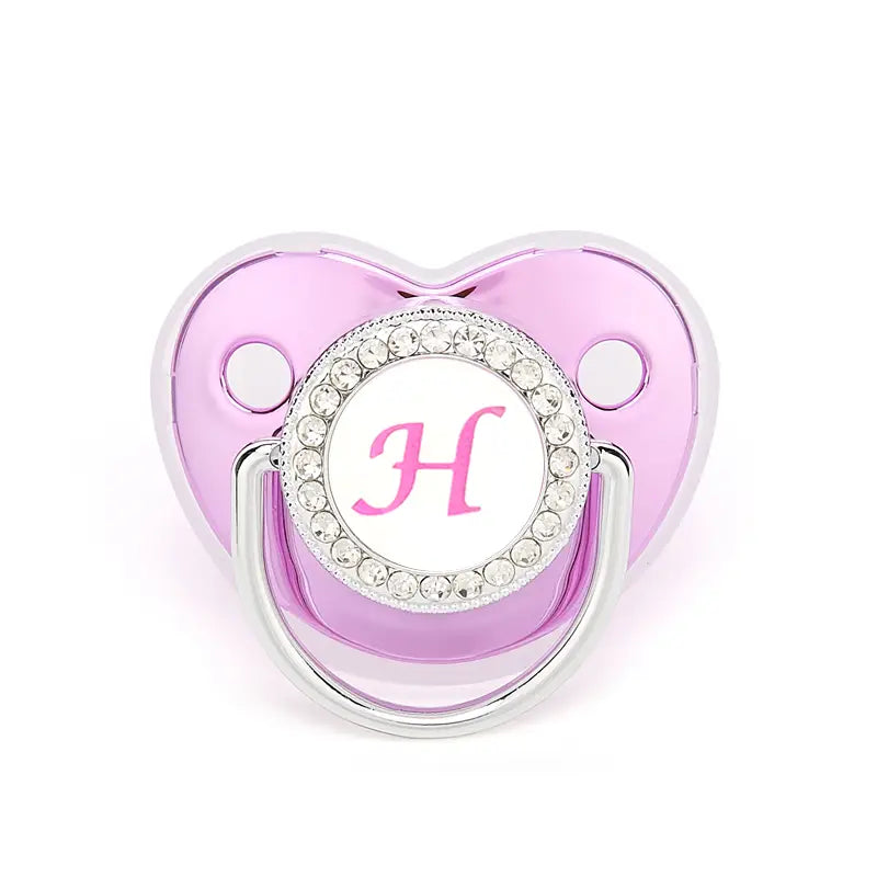 Factory Direct Cross-border Hot Sell Single Metal Purple English Letter With Diamond Baby Pacifier With Dust Cover