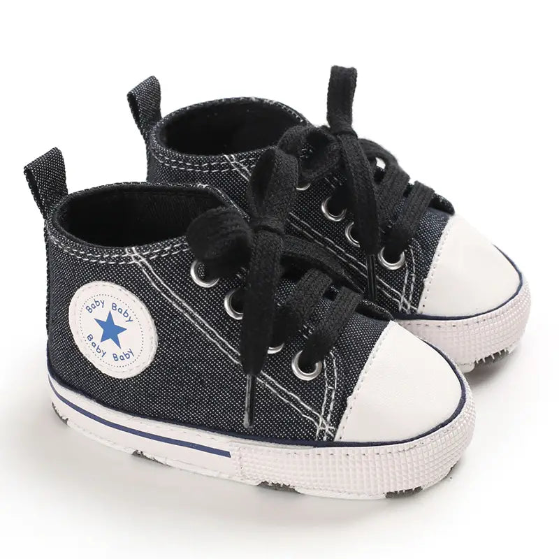 Unisex Baby Boys Girls High Top Sneaker Soft Anti-Slip Sole Newborn Infant First Walkers Canvas Denim Shoes